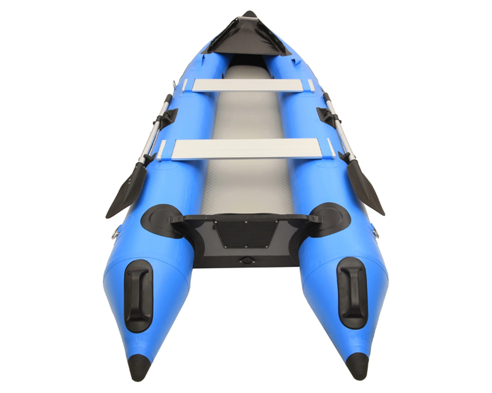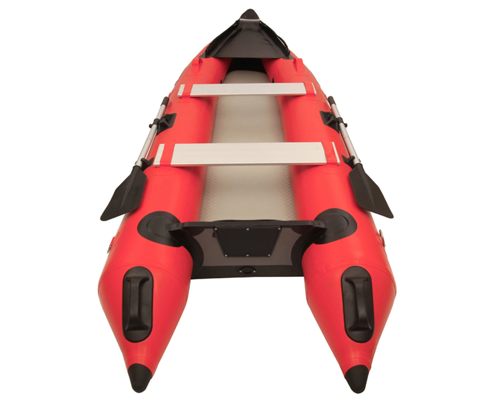 The Scout 365 is a crossover of dory fishing boats, kayaks, and an inflatable boat all rolled up into one. The unique design provides you with the best lightweight, durable, and compact kayak. The high bow with the flat bottom offers incredible stability and allows you to navigate shallow waters. You can fly fish standing up, cast like a pro, and never lose stability. Combined with a small outboard motor the Scout 365 moves through the water with even more ease.